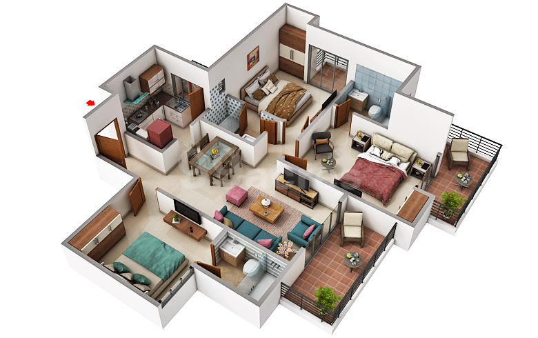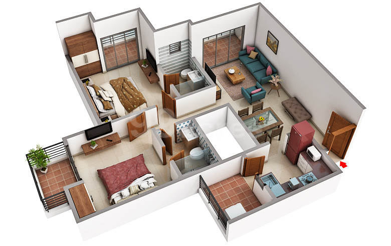 The project offers 2 BHK apartments with an area of approximately 1,270 sq. ft. and 3 BHK residences of around 1,635 sq. ft. Each unit is crafted with contemporary interiors, premium fittings, and smart use of space to create a warm and sophisticated living environment. The double-height entrance lobby, elegant lift lobbies, and exclusive tower design enhance the sense of privacy and luxury.