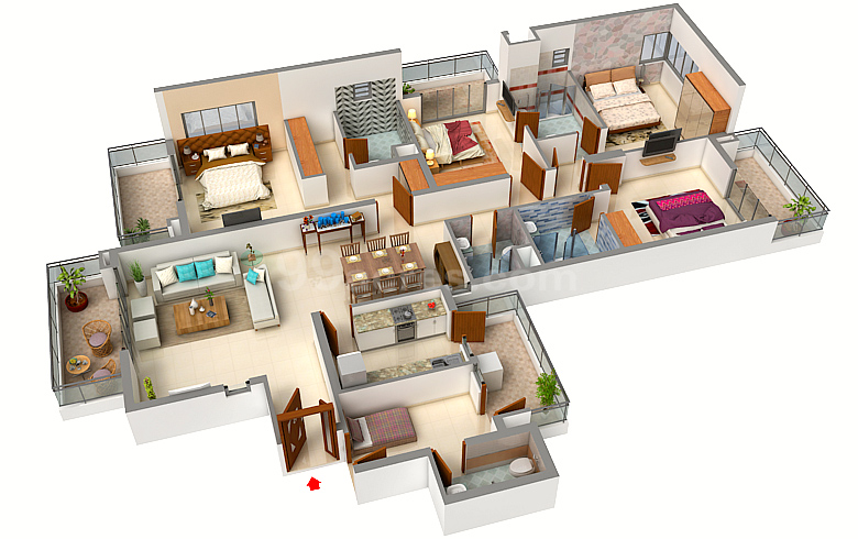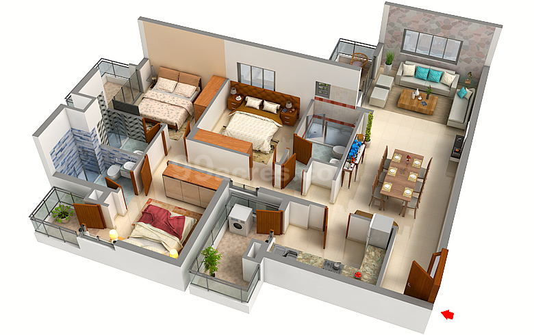 Spacious Residences – 3BHK, 4BHK, and penthouses ranging from 1,844 – 5,791 sq. ft., with three-side open layouts.