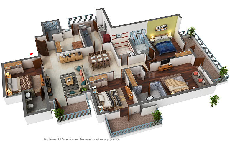 Spacious Residences – 2, 3 & 4 BHK apartments (1,366 – 3,506 sq. ft.), all three-side open with wide balconies.