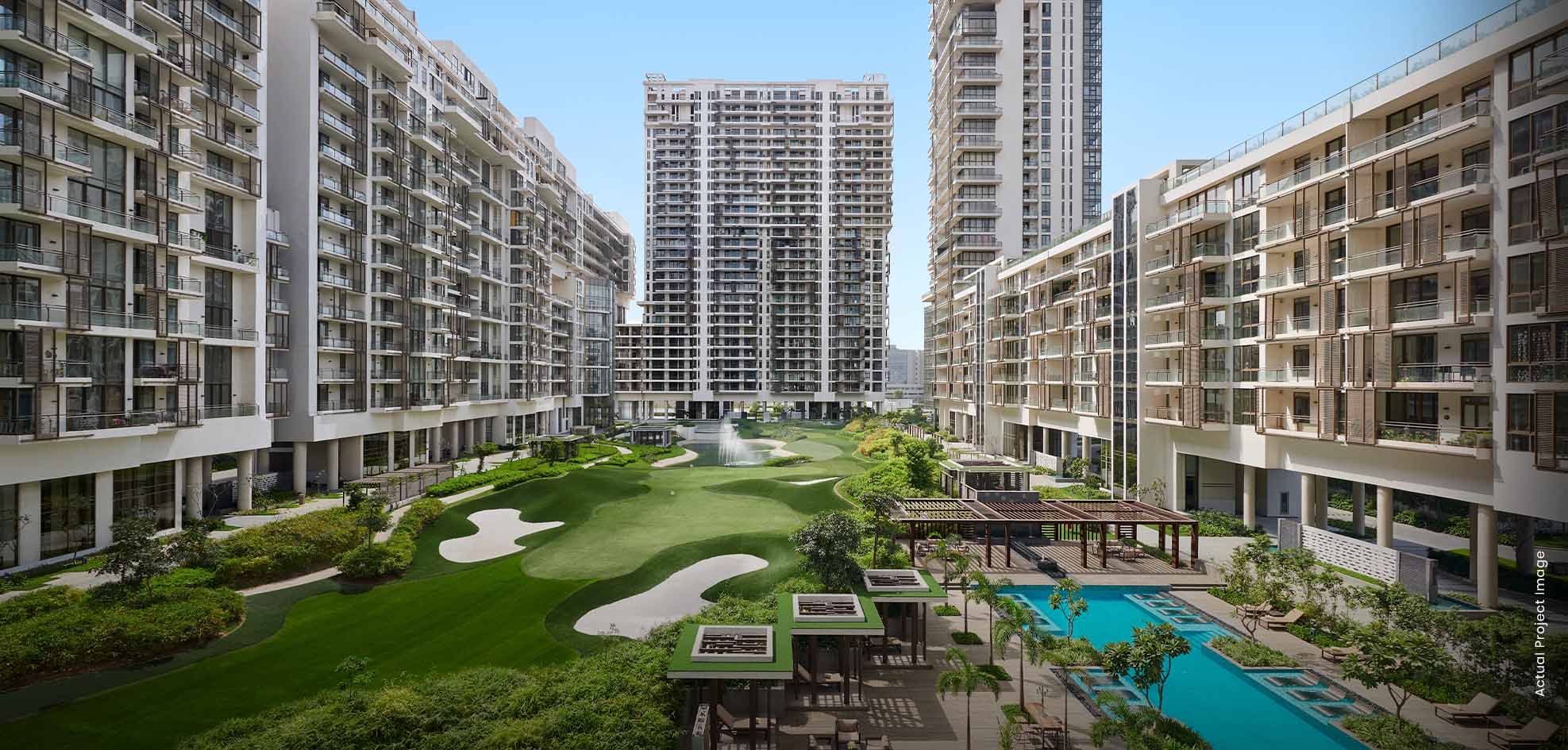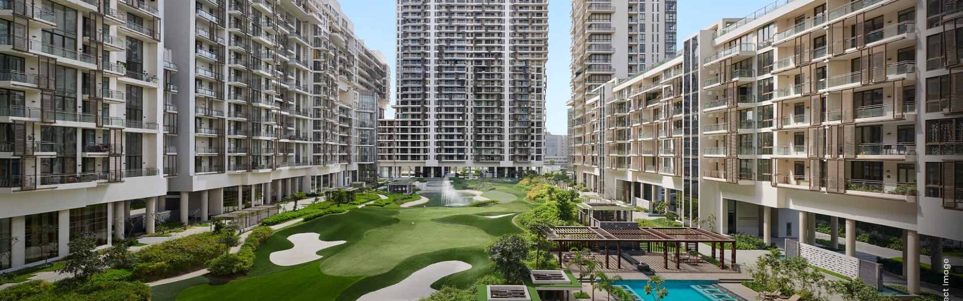 M3M Golfestate Fairway West is a pinnacle of luxury within the iconic Golf Estate. Its majestic towers elegantly surround a signature 9-hole executive golf course, forming a stunning architectural marvel. Encased in a serene golf landscape with fountains, water features, and lush greenery, Fairway West offers scenic beauty and refined living. The residences cocoon you in unmatched elegance and comfort, setting a new benchmark for luxury living.